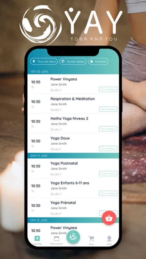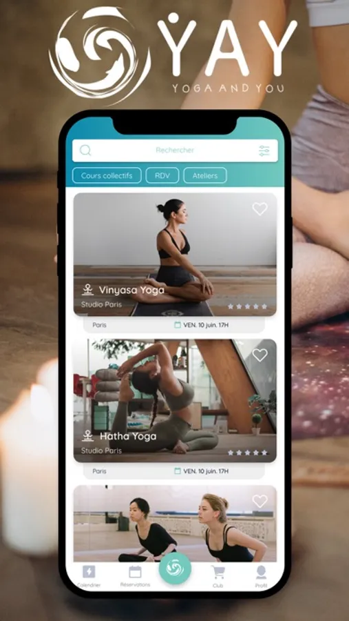 Téléchargez l'application YAY, pour réserver et organiser vos cours de Yoga. A partir de l'application vous pouvez voir le planning, réserver vos cours et vos ateliers, annuler en temps et en heure, acheter des crédits, voir les infos de nos studios...Une application simple, facile et rapide à utiliser.