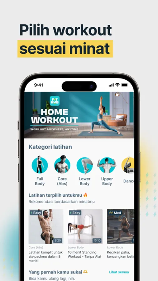 - Tonton dan ikuti arahan workout dari trainer berpengalaman