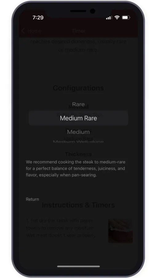 Using Steak Timer - Cook Like a Pro is a breeze. Simply choose the type of steak you're working with, then select your desired doneness and thickness. And just like that, you're ready to embark on a culinary journey that will leave your taste buds dancing with delight.