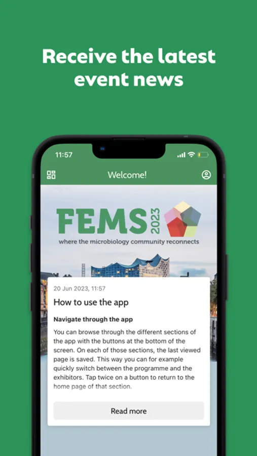 The official FEMS2023 Congress App helps you schedule the sessions you want to attend and network with other delegates, and provides you with useful service information around the congress.