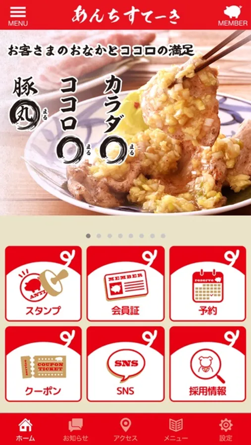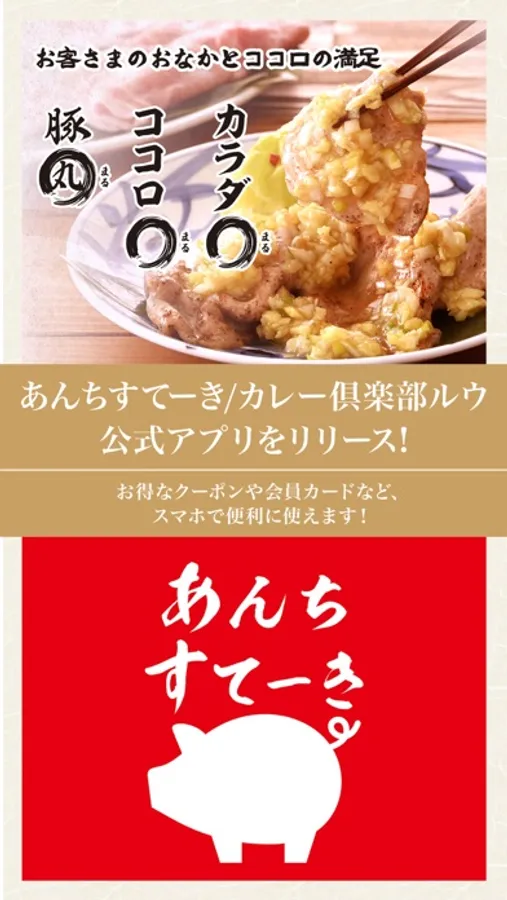 あんちすてーき とろろ麦めし豚丸、豚楽亭、カレー倶楽部ルウの公式アプリです。