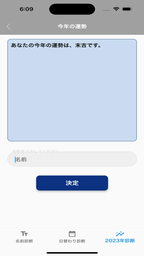 このアプリでは、あなたの名前、毎日の状態、そして2023年の診断を提供します。