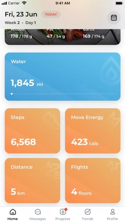 The app integrates with Apple Health to show your daily activity - distance, steps, active energy, and flights to help you better achieve your goals.