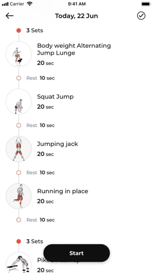 App also uses Apple Health to track energy burned and heart rate during a workout session, if an Apple Watch is used.