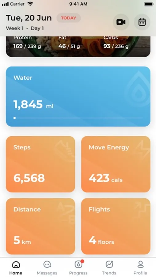 The app integrates with Apple Health to show your daily activity - distance, steps, active energy, and flights to help you better achieve your goals.