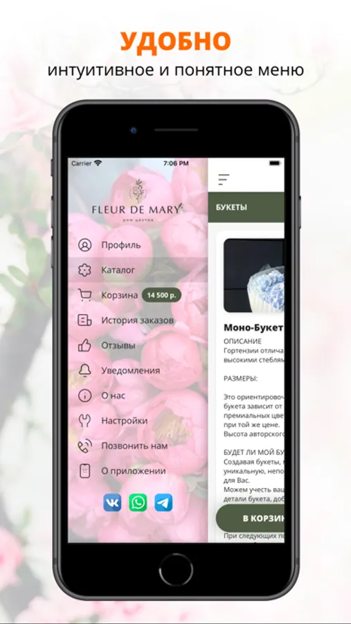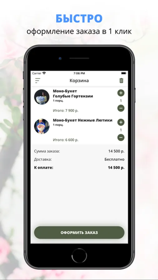 Скачивайте наше приложение, оформляйте заказ и наслаждайтесь свежими цветами!