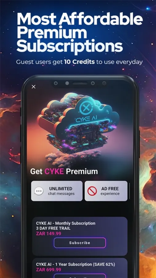 CYKE AI, the revolutionary Chat-GPT app designed to make your conversations smarter, faster, and more engaging than ever before with one of the most affordable pricing plans in the world on our premium subscriptions.