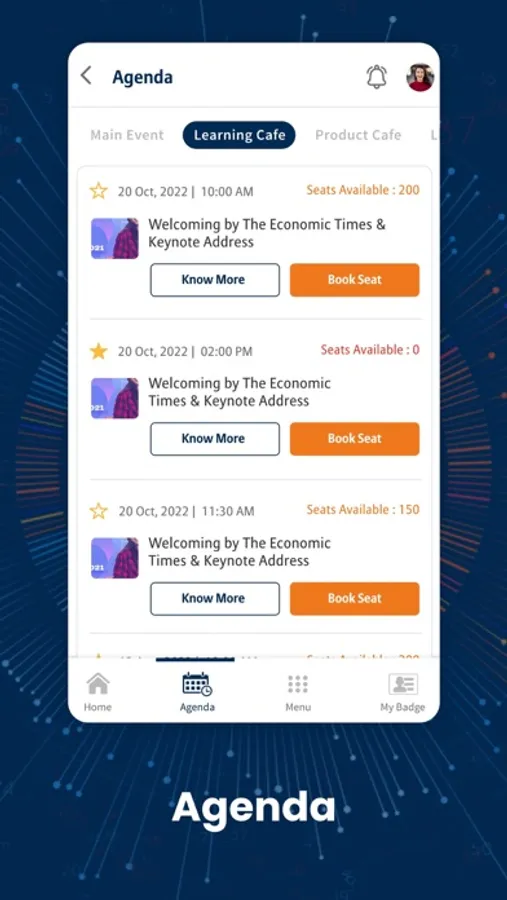Register yourself & your family members, Get notified, Book yourself a seat at the Learning Café, Reserve your place at the Product Café, Explore the various other event elements.
