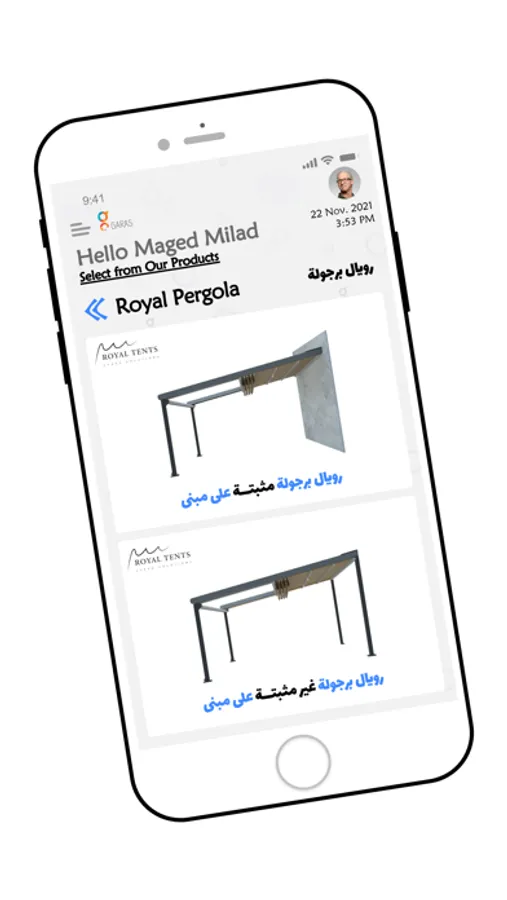 This app Specially designed to helps our clients and Providers to select from our solution, with their specific criteria, selections and dimensions, with simulated real design and ability to provide many suggestions, and accelerating Ordering and sales Process.