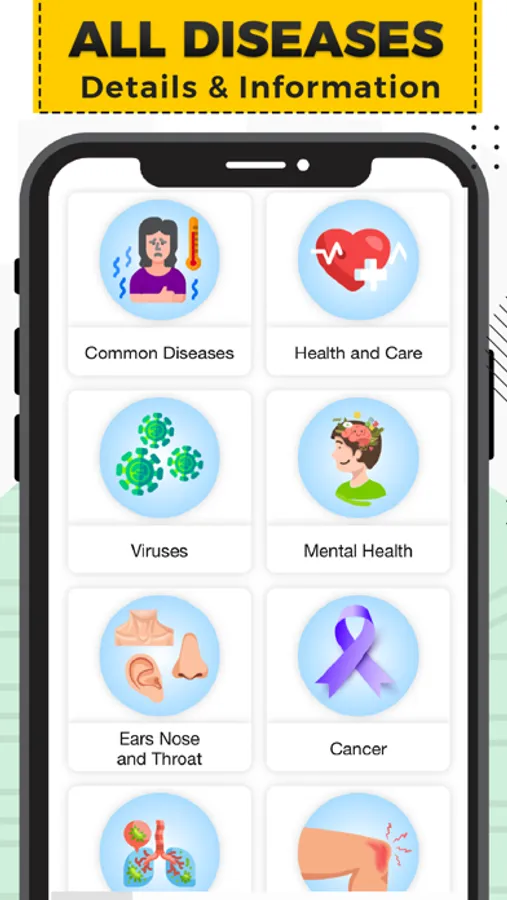 ==> All major categories relevant to diseases including common diseases, health and care, viruses, mental health, ear, nose and throat relevant diseases, cancer, infection and poisoning, injuries, pregnancy relevant complications, eyes relevant and almost every part of body relevant diseases are added. All common diseases including allergies, cold and flu, diarrhea, headaches, hepatitis, and their types are included.