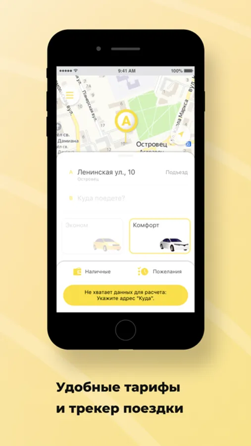 Адрес подачи определится автоматически. Вам остается указать, куда вы поедете. Используйте шаблоны с адресами и настройками, которыми чаще всего пользуетесь, чтобы заказать такси в пару кликов.