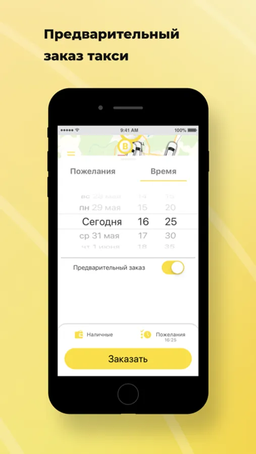 Выберите опцию “Предварительный заказ”. Поиск автомобиля начнется незадолго до заказа поездки, и автомобиль приедет к назначенному времени. Также вы будете заранее знать стоимость поездки.