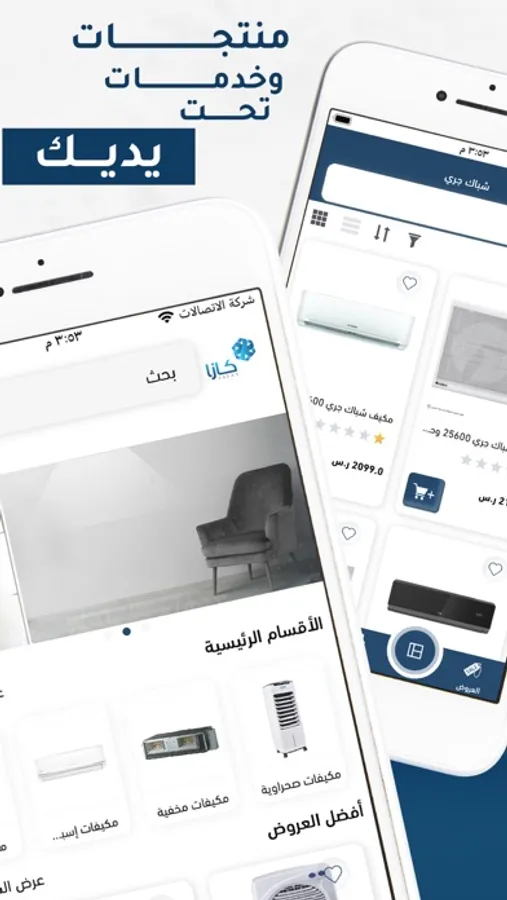تطبيق كازا يقدم جميع منتجات التكييفات والاجهزة الكهربائيه ( شاشات - فريزر- افران - ثلاجات - اجهزه ذكيه ) بمختلف أنواعها بأسعار في متناول جميع العملاء