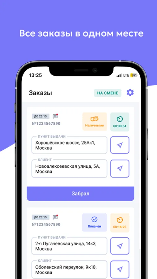 Курьерика – это приложение, созданное специально для курьеров, которое дает им возможность быстро получать заказы, изменять их статусы и строить оптимальные маршруты до клиентов в режиме онлайн.