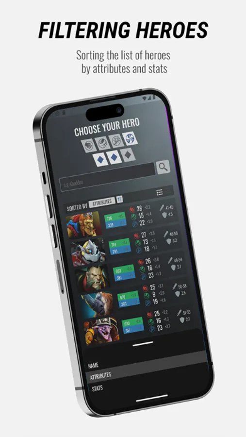 Comprehensive Information: Browse through statistics, skills, base and secret attributes, and read a description for each hero.