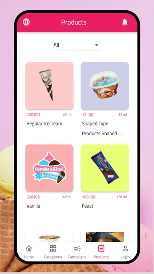 Users can view all Fusteka Ice-cream products categorized by their respective categories.
