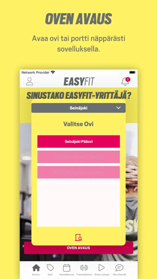 Avaa kuntokeskuksen ovi tai portti näppärästi sovelluksella. Oven avaaminen edellyttää bluetooth-yhteyttä.