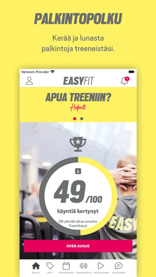 EasyFit-sovelluksella käytössäsi ovat mm. seuraavat ominaisuudet: