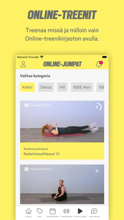 Treenaa missä ja milloin vain Online-treenikirjaston avulla. Valitse suosikkituntisi ja katso treenivideot suoraan sovelluksessa – silloin kun sinulle parhaiten sopii.