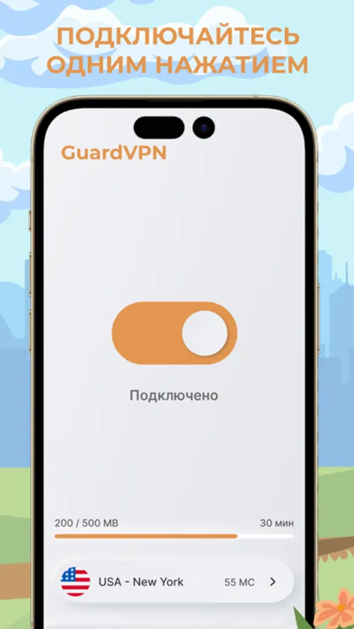 Guard VPN - бесплатный VPN для вашего устройства. Быстро устанавливайте соединение, нажав кнопку подключения.