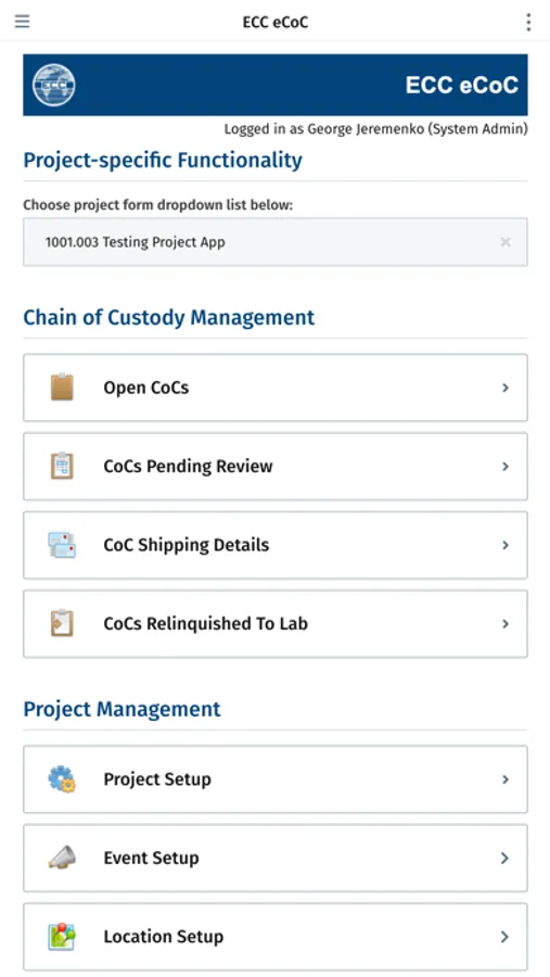 The aim of this app is to allow field personnel to setup and track sampling at various project sites as well as automatically generating Chain of Custody documentation for shipment with said samples to labs for analysis.