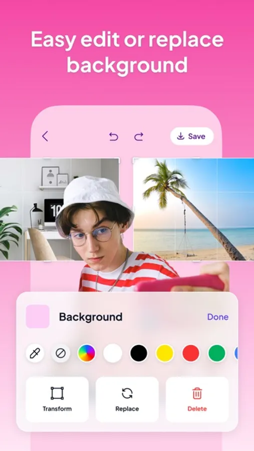 With its advanced features and intuitive interface, SnapBG offers precise and seamless background removal, allowing you to create stunning visuals with ease. Just touch the area you want to erase and the auto eraser tool will do the rest of the work for you.