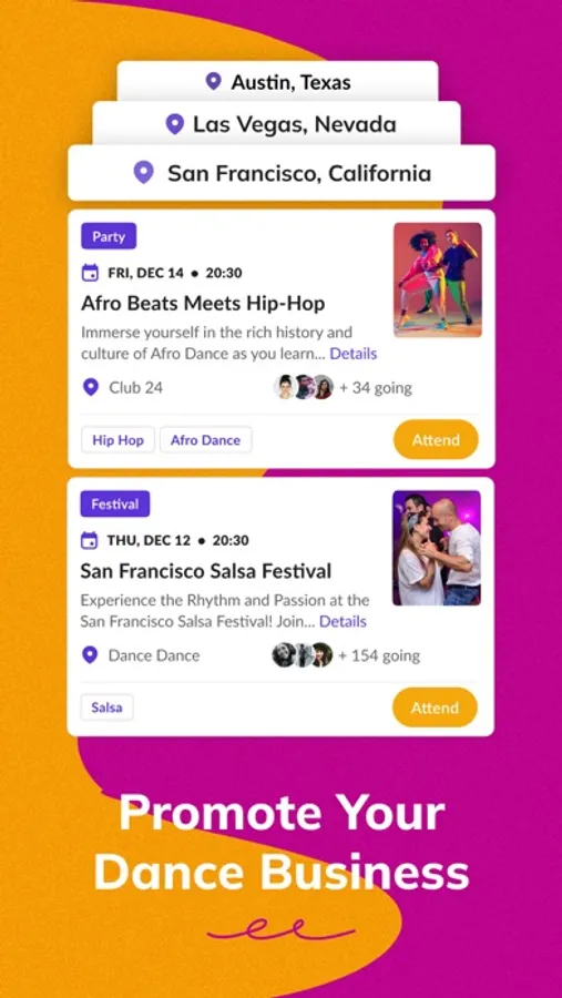 Browse and book dance classes in your area, from hip hop to ballet and everything in between. Connect with fellow dancers, find dance partners, and expand your network within the vibrant dance community.