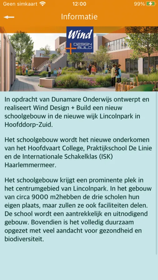 In deze app vindt u alle informatie over het project 'De Nieuwe School Hoofddorp' van Windgroep. Er wordt belangrijke projectinformatie, de laatste planning en contactinformatie weergegeven . Ook kunt u op deze app vragen, opmerkingen of klachten achterlaten die betrekking hebben op het project.