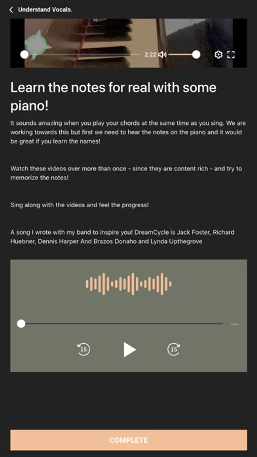This APP is quite possibly the first real singing lessons APP. Beginners and singers alike will learn the complex art of singing with details that are from Classical theory back ground to Soul and Rock and roll tricks of the trade. This vocal coach has been teaching vocals for over 26 years at a Music School in England and her music School in California. University level ear training as well as all the Music Industry tricks of the trade when it comes to singing. Easy to fit in to your life these lessons land in "drip" format once a day for a month. This is on purpose so that you can take in a little each day and make BETTER progress than one lesson each week. Vocal lessons at this standard are $50 for half an hour if you can find the vocal teacher - but here you get the golden nuggets of information that a coach might give you in a year of lessons - in one month. After you complete the month you can do it all again since it takes practice! Sing along. Singing makes you happy - it's been proven!