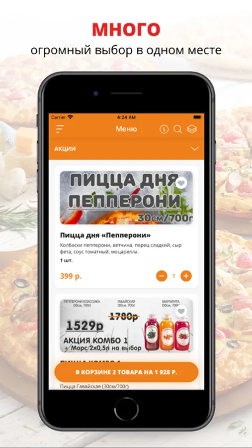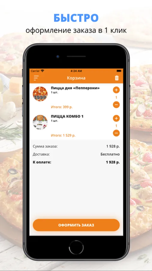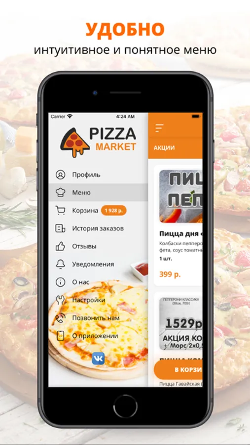 Воспользуйтесь удобным приложением для заказа еды «PizzaMarket».