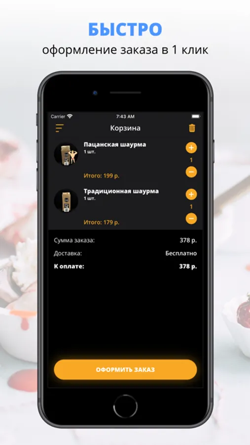 удобная корзина и быстрое оформление заказа,