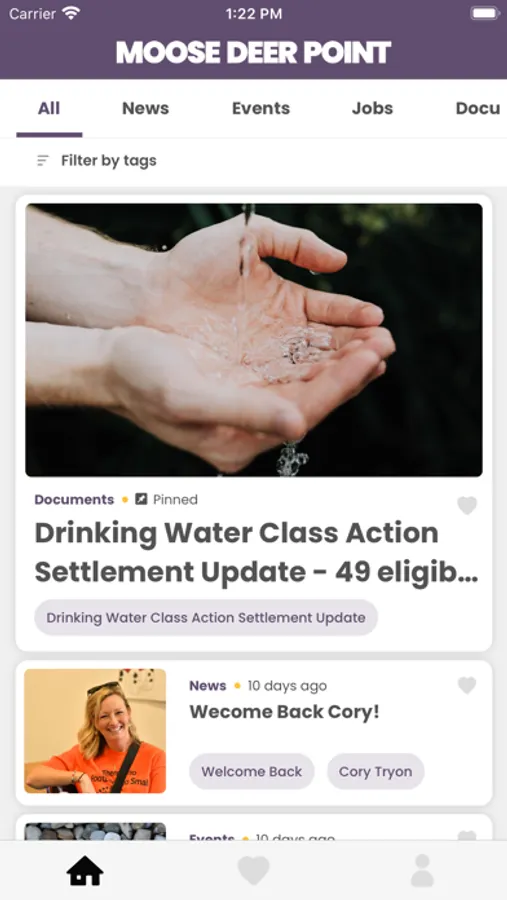 - View personalized feed supplied by the Band Office in a chronological order or by category:
