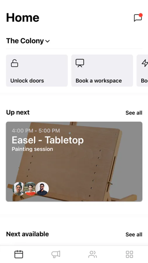 Our flexible app offers a seamless user experience designed to connect you with your studio and community like never before. With features like community messaging, event calendars, and easel/table bookings, staying productive and connected has never been easier.