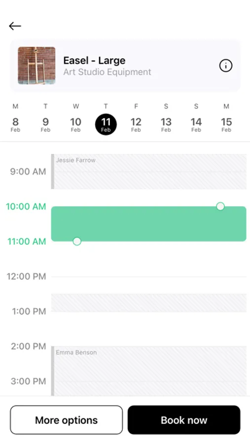 Our app lets you easily book easels/tables. With our real-time availability feature, you'll never have to worry about showing up and not having resources available to you.