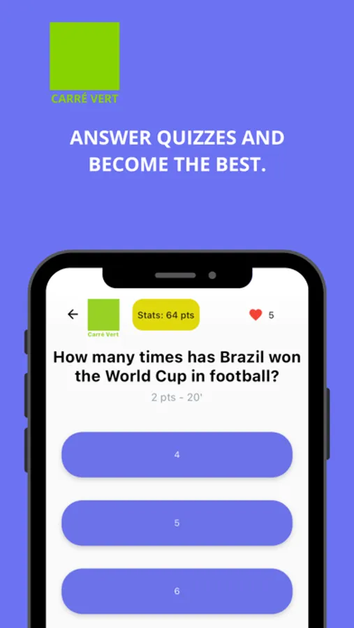 Play against your friends or challenge yourself with thrilling football quizzes! Initially, it was just a pastime among buddies, but now, Carré V is here for everyone!