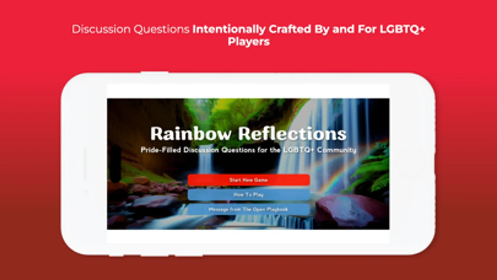Rainbow Reflections, crafted by The Open Playbook, is an immersive LGBTQ+ question game created to welcome and embrace all players, identities, forms of connection, and relationships - be it individuals, couples, triads, polyamorous networks, or lively group parties.