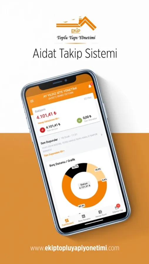 Ekip Toplu Yapı Yönetimi Profesyonel Site ve Apartman Yönetimi hizmeti vermekte olduğu site sakinleri için; Aidat vb. borçlarını takip edebilecekleri, kredi kartı ile mevcut borçlarını ödeyebilecekleri mobil uygulamadır. Yönetimcell'in Ekip Toplu Yapı Yönetimi için geliştirilmiş uygulamasıdır.