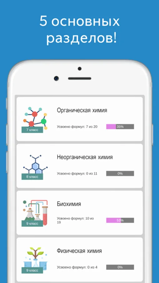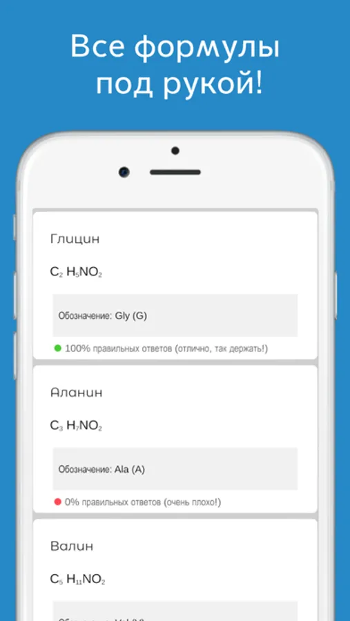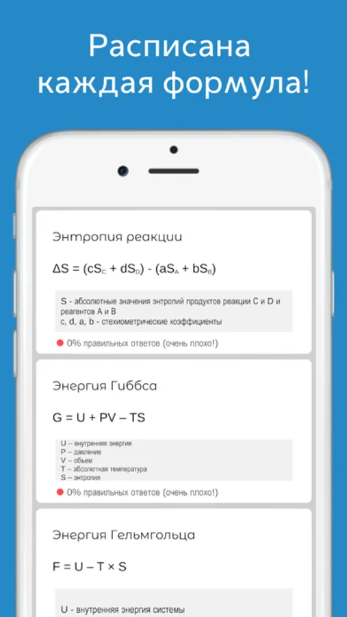 - возможность создавать свои списки формул, проходить по ним тест, а также делиться этим списком с другом;