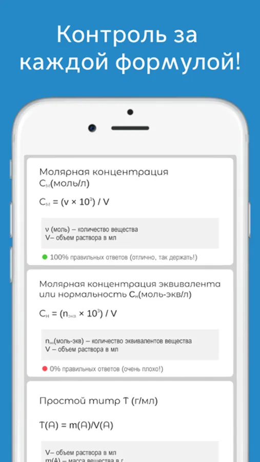 Мы будем контролировать ответы на каждую из формул, например, если 7 раз из 10 был дан правильный ответ на одну и ту же формулу, значит формула усвоена на 70%!