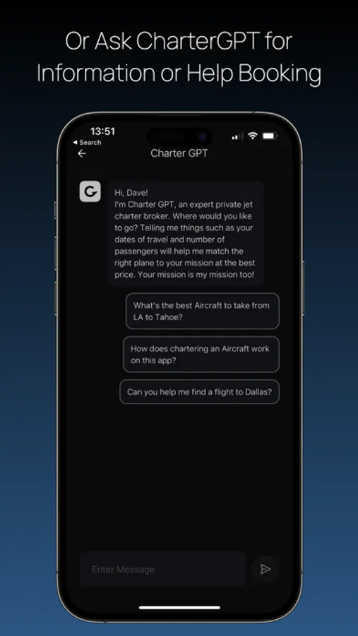 Speak or type in natural language to CharterGPT to look, book and fly private from wherever you are, whenever you want. Keen to try private aviation but have a lot to learn? Let CharterGPT surprise and delight you with the depth of its expertise and the accuracy of its pricing. Skip the lines at the airport and fly in comfort and style on your own terms!