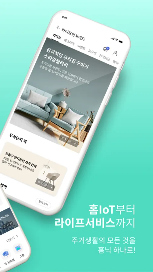 홈IoT부터 커뮤니티 시설 예약, 생활지원센터까지 주거생활의 모든 것을 하나의 앱으로 편리하게 이용 가능합니다.
