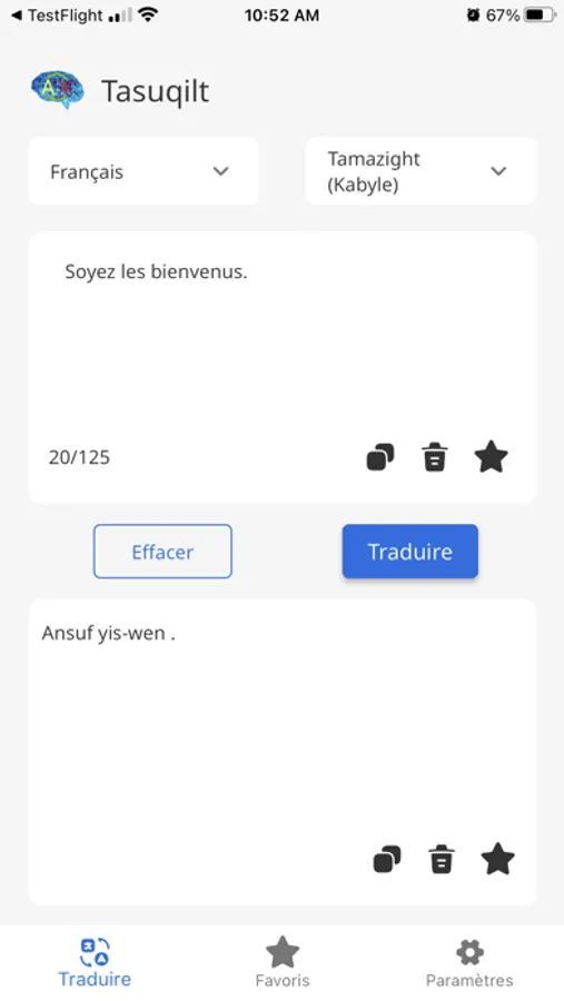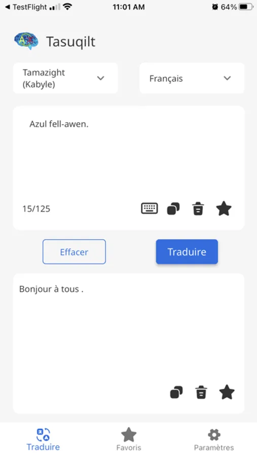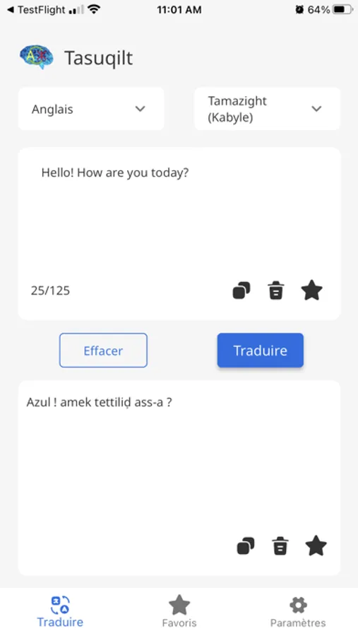 Automatic translation via a mobile application: it's now possible to translate your sentences from French (or English) into Kabyle and vice-versa.