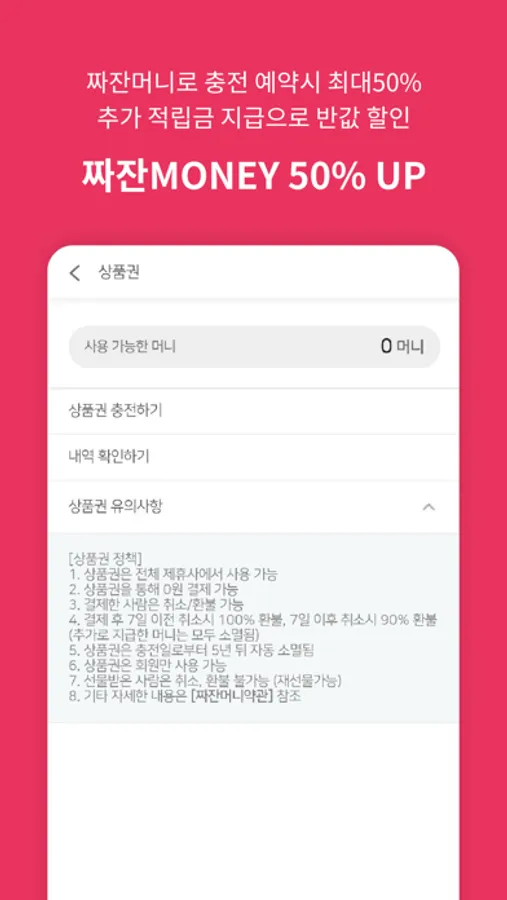 짜잔머니를 이용한 편리한 결제와 최대50%할인 효과