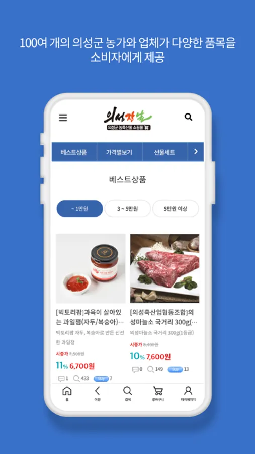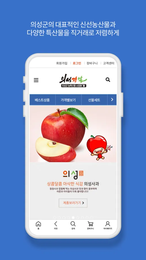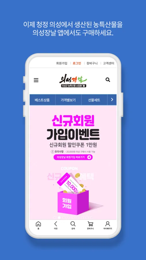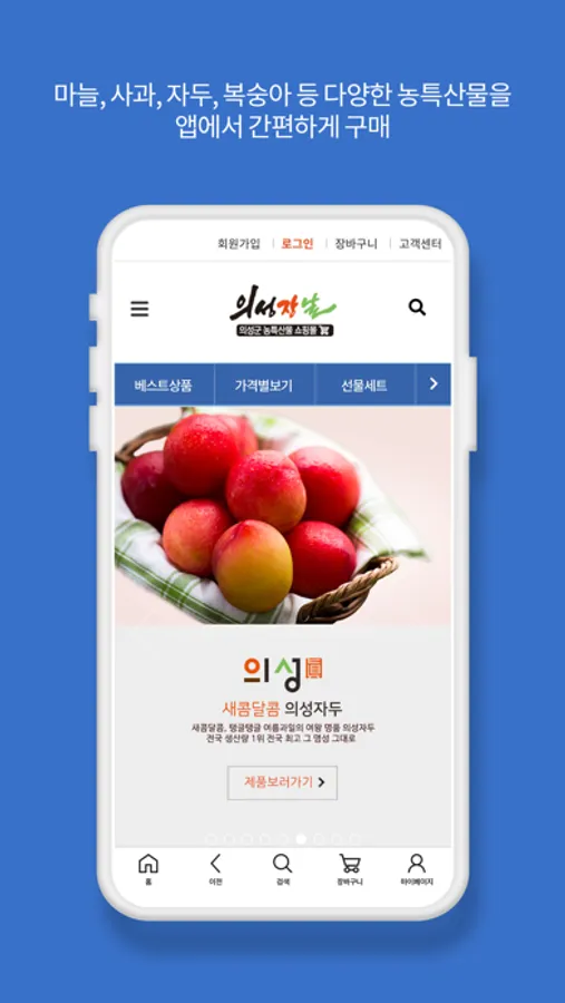 이제 청정 의성에서 생산된 농특산물을 의성장날 앱에서도 구매하세요.