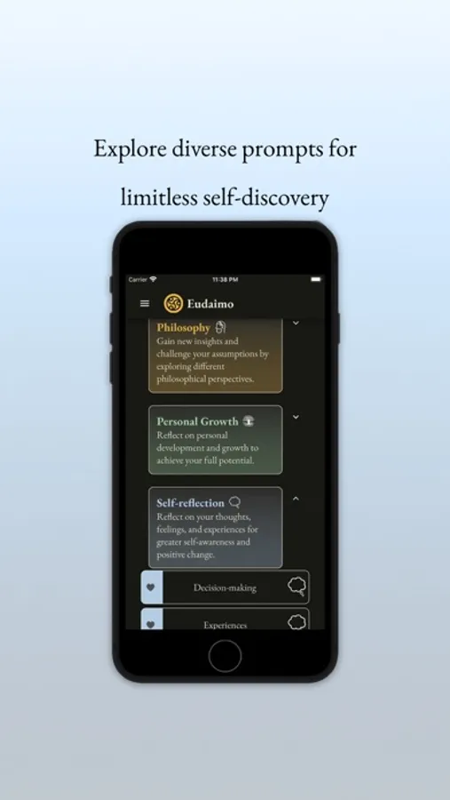 Download Eudaimo now and unlock a world of self-discovery, personal growth, and fulfillment. Begin your transformative journey today and embrace a life of purpose and authenticity.