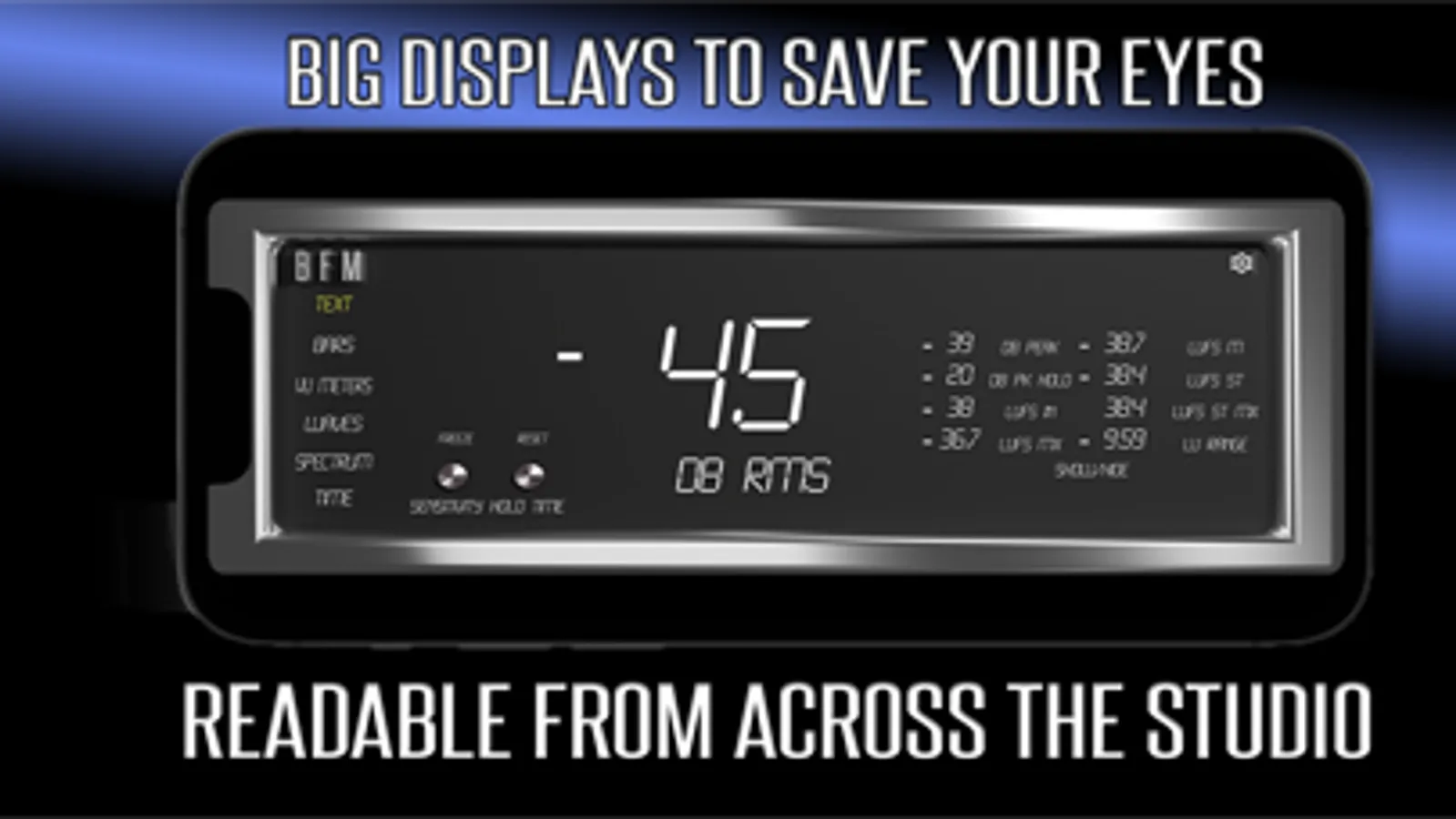 BFM or Big F*ing Meters is a macOS, Windows, and soon to be iOS compatible Metering plug-in designed exactly how the name sounds... really f*ing big. With the main goal of readability we wanted to bring a meter that you can see from across the studio and keep your records clip-free.