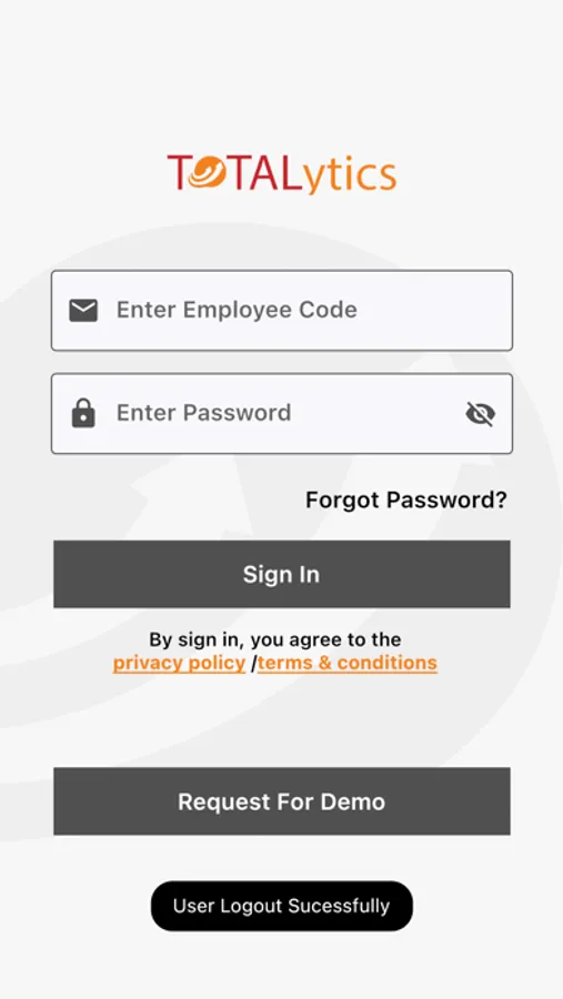 Note: Your organization must authorize access to TOTALytics app. One will have access to features that organization has enabled based on individuals role.