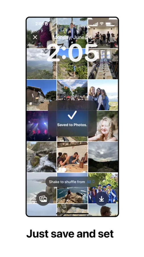 LockParty is the easiest way to make a lock screen wallpaper that will make you smile. Shuffle your camera roll or handpick your favorites to instantly create a beautiful collage.