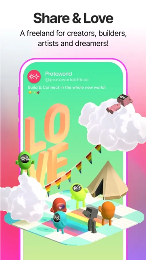Welcome to Protoworld, a 3D social world where creativity come to life.