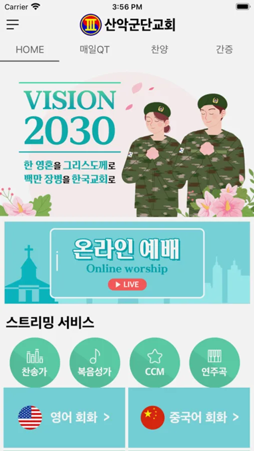 여러분을 위한 비전2030 앱이 등장했습니다! 이 앱은 한 영혼을 그리스도로 인도하고, 백만 장병이 한국교회의 힘으로 모여 함께 군선교회의 길을 걷는 데 도움을 주는 획기적인 도구입니다. 이제 산악군단으로서 함께 나아가는 성도들은 이 앱을 통해 더 강력한 연결과 영감을 얻을 수 있습니다.